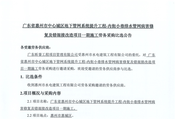 惠州市增江龍門段治理工程施工(一標(biāo)段)勞務(wù)采購中選候選人公示……